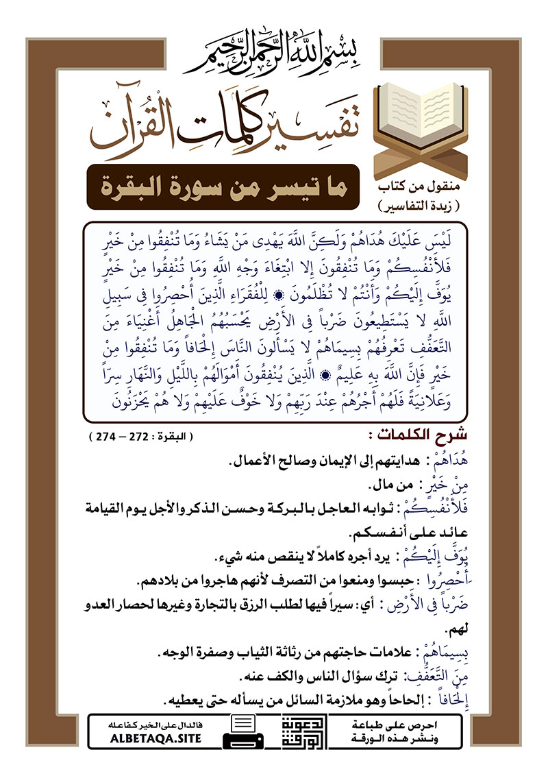 تفسير كلمات القرآن ما تيسر من سورة البقرة الآيات 272 274 مدونة ايات الذكر الحكيم