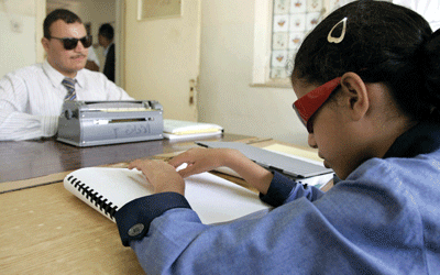 6 طريقة برايل هي الوسيلة التي عن طريقها يستطيع الكفيف أن يتعلم تعقيدات اللغة كالهجاء. اللغة التي يقرأ بها الكفيف. ما هي اللغة التي يقرأ بها الكفيف.