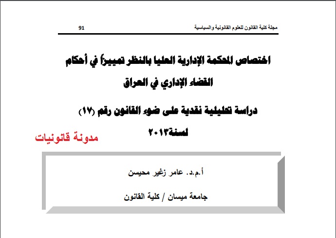 Pdf اختصاص المحكمة الادارية العليا بالنظر تمييزا في احكام القضاء الاداري في العراق دراسة مقارنة