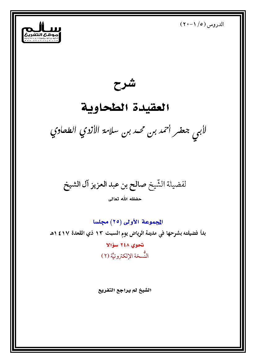 الشيخ صالح ال الشيخ Sharh Al Aquida Al Tahawia
