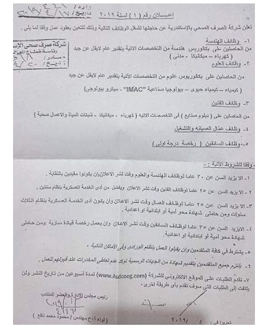 اعلان وظائف شركة مياه الشرب والصرف الصحي اعلان رقم 1 لسنة 2020